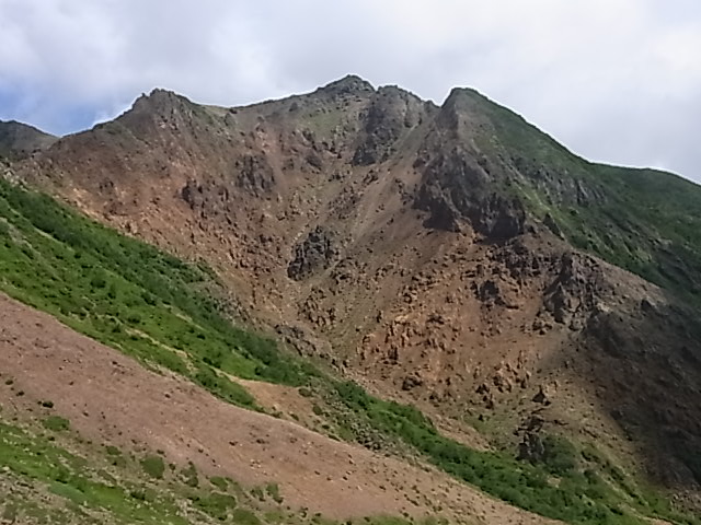 茶色い岩肌がむき出しで、鋭角的な男性的な山容です。