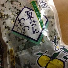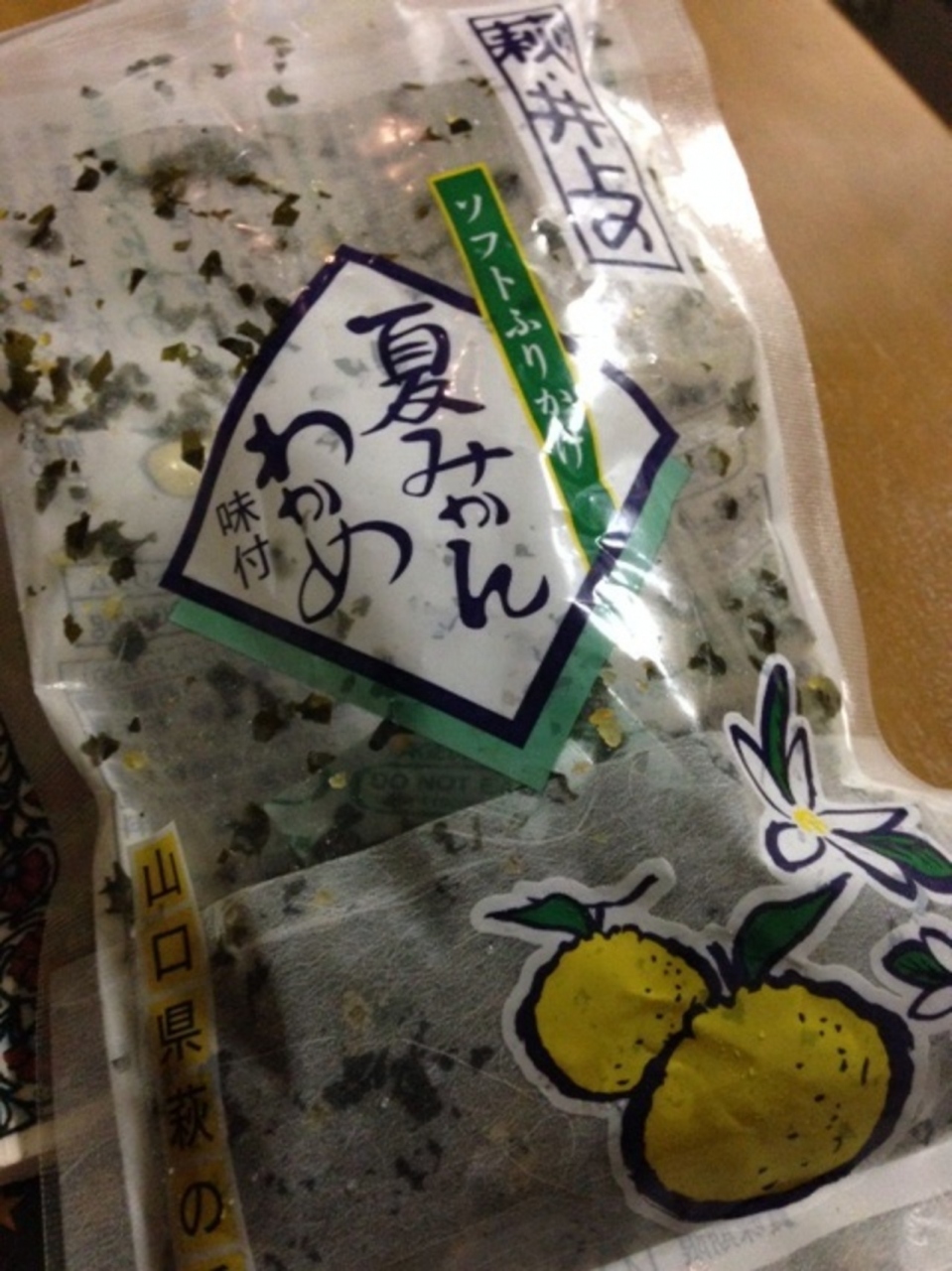 しそわかめふりかけが有名なお店です。徳山駅のお土産屋さんで、夏みかんわかめと明太わかめを発見。夏みかんの風味がさわやかでさっぱりとしていておいしく、明太もご飯がすすむ感じで意外においしかったです。お値段もそんなに高くないので、お土産におすすめです。