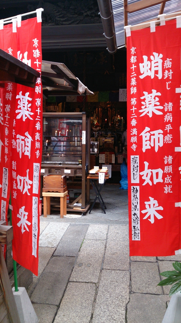 蛸薬師堂永福寺は、昔より寺内に一歩入っただけでも、蛸薬師如来さまのご加護があると言われているところです。境内に赤いのぼりが多数立っています。蛸薬師のゆえんは、かつてこの寺にいた僧が病身の母の願いで「タコ」を買ったが見とがめられ、進退につまった僧が日頃信仰する薬師如来に祈念したところ、タコは薬師経に変わり、また母の病が癒えたという話があるところからついたそうです。
