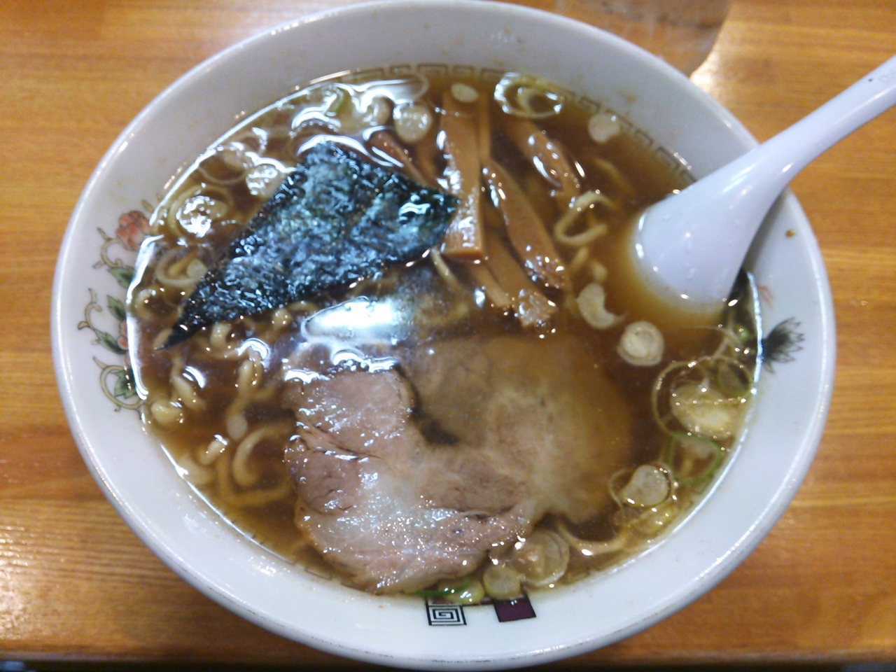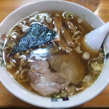 順番になり定番の中華そばを注文すると、店員さんが小気味よいリズムでラーメンを調理しています。出された中華そばは煮干、野菜、鶏ガラ等からとった出汁が効いていて、また、麺も手作り感が出ていて美味しかったです。ただし、少しスープが脂っこく、焦げた感じがしました。
