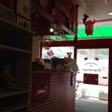 赤く塗られたお店を入ると、3テーブル、ソファや椅子がこじんまりと並べられています。