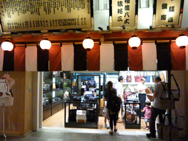カバンや革小物のお店「輪怐」は、ターミナルビルの4階にあります。江戸小路のお店の中でも、飛び切り「江戸風」の外観でした。