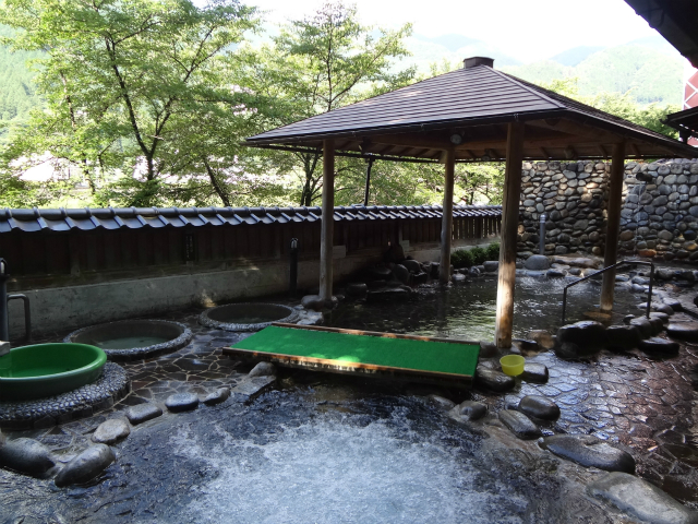 飛騨川沿いを左へ進んだところにある、露天風呂だけの日帰り温泉施設です。