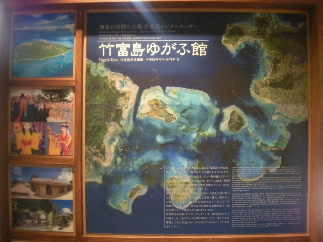 八重山諸島で石垣島の離島ターミナルから高速船ですぐのところにある、定番観光スポットである”竹富島”の竹富港から歩いてすぐのところにあるのがここ「竹富島ビジターセンター ゆがふ館」。ここは、公的な施設みたいで、とても立派な建物と展示物があります。意外と観光客は訪れていないかもしれませんが、ここは是非とも言った方がいいですね。竹富の姿などを、各種写真や説明なども展示されています。観光コース的にも、あまり入っていないのが残念です。また、港の近くではなく、集落の中にあれば、利用頻度がUPするような気がします。ここで、島の琴が理解しやすくなりますので、是非、訪れてみて下さい。