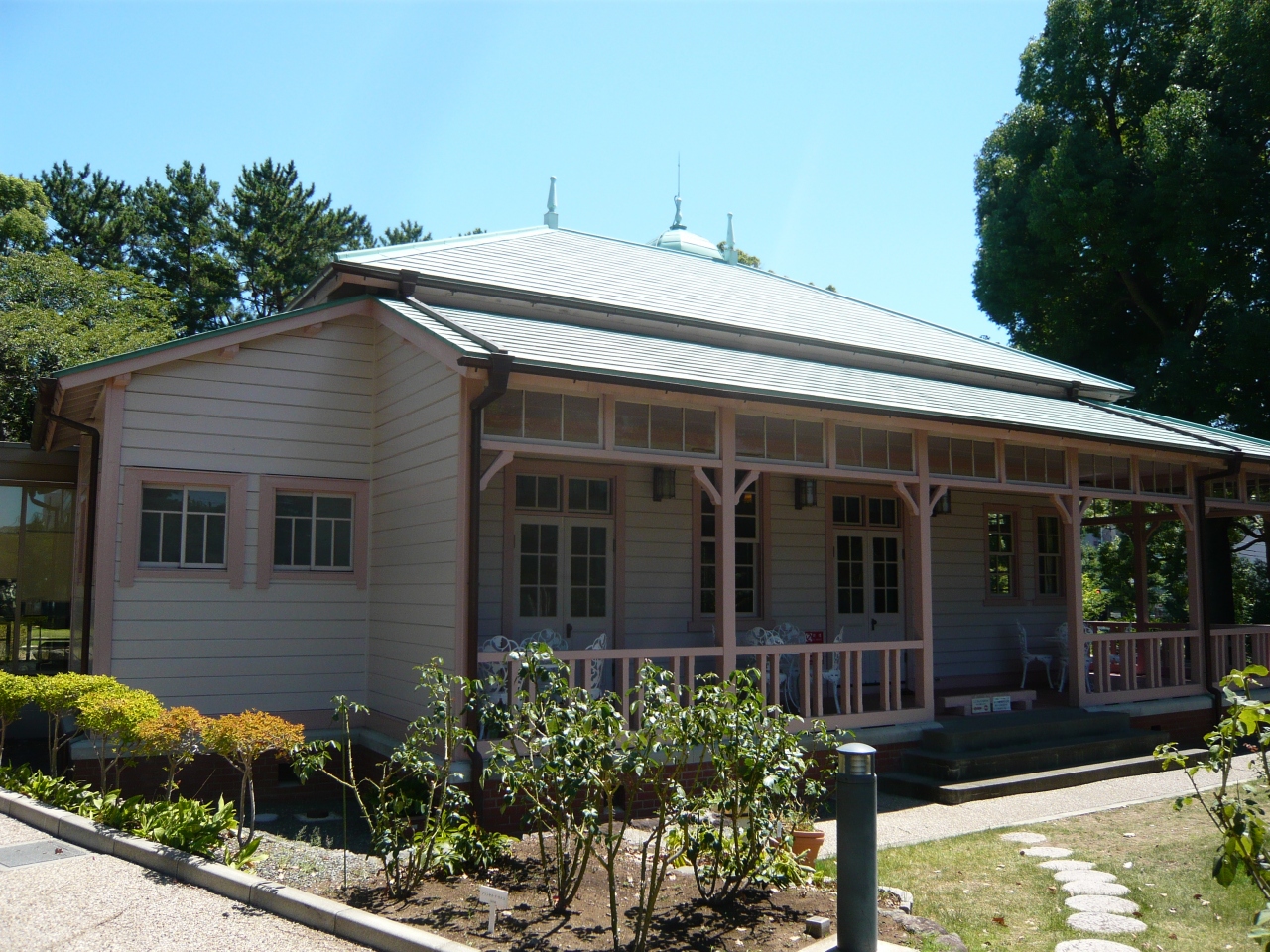 本来は日本火薬製造株式会社の英国人の住宅。明治44年に火災で焼失後、再建され、大正八年に海軍に買収され、将校のクラブとして使われました。瀟洒な造りで国の登録有形文化財になっています。見学は無料で前庭にはささやかながらバラ園もあります。