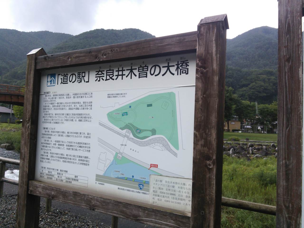 国道側と裏側の駐車場を結ぶのが、木曽の大橋。この道の駅のメインの施設です。