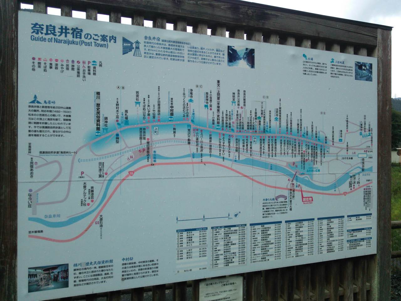 奈良井宿のちょうど中心にあります。駐車スペースは、国道側だけでなくて、裏側から回り込んだ所にもあります。