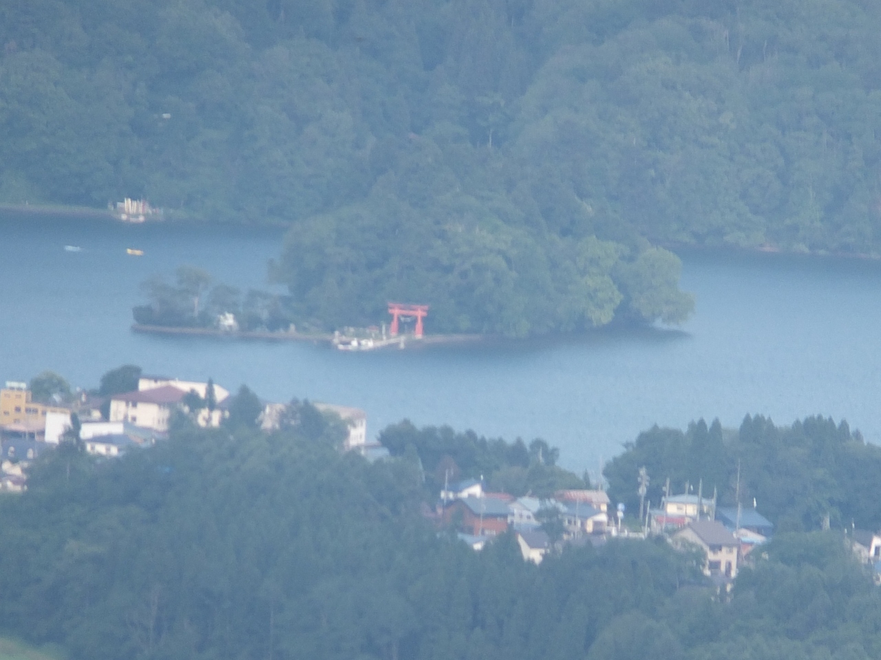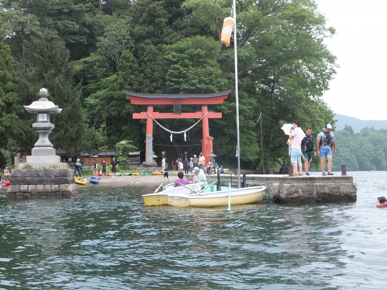 足こぎボートで湖の中ほどにある小島に上陸。ここにパワースポットの神社がありお参りできます。真夏でも湖上には涼しい風が吹き渡り、とても心地良かったです。