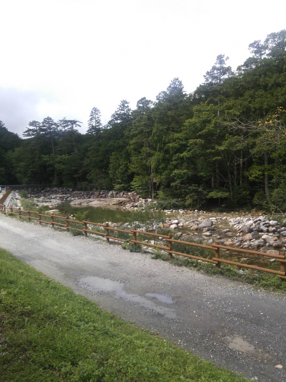 国道19号線上松から、山あいにどんどんと進みます。アクセスは悪く、路線バスなどは無く、手段はマイカーのみ。道も狭く、途中には直角に曲がる橋のあるカーブや車同士すれ違いが出来ない幅の道路もありました。
