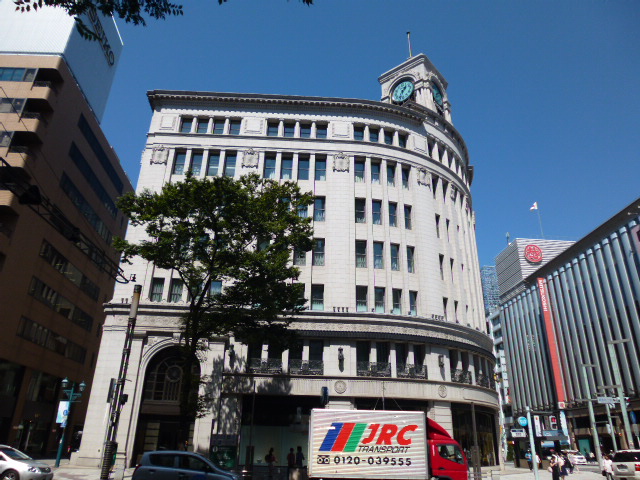 猛暑の8月、銀座での打ち合わせを終えて地下鉄に乗る前に向かいを見ると、和光ビルが青空をバックに映えていました。