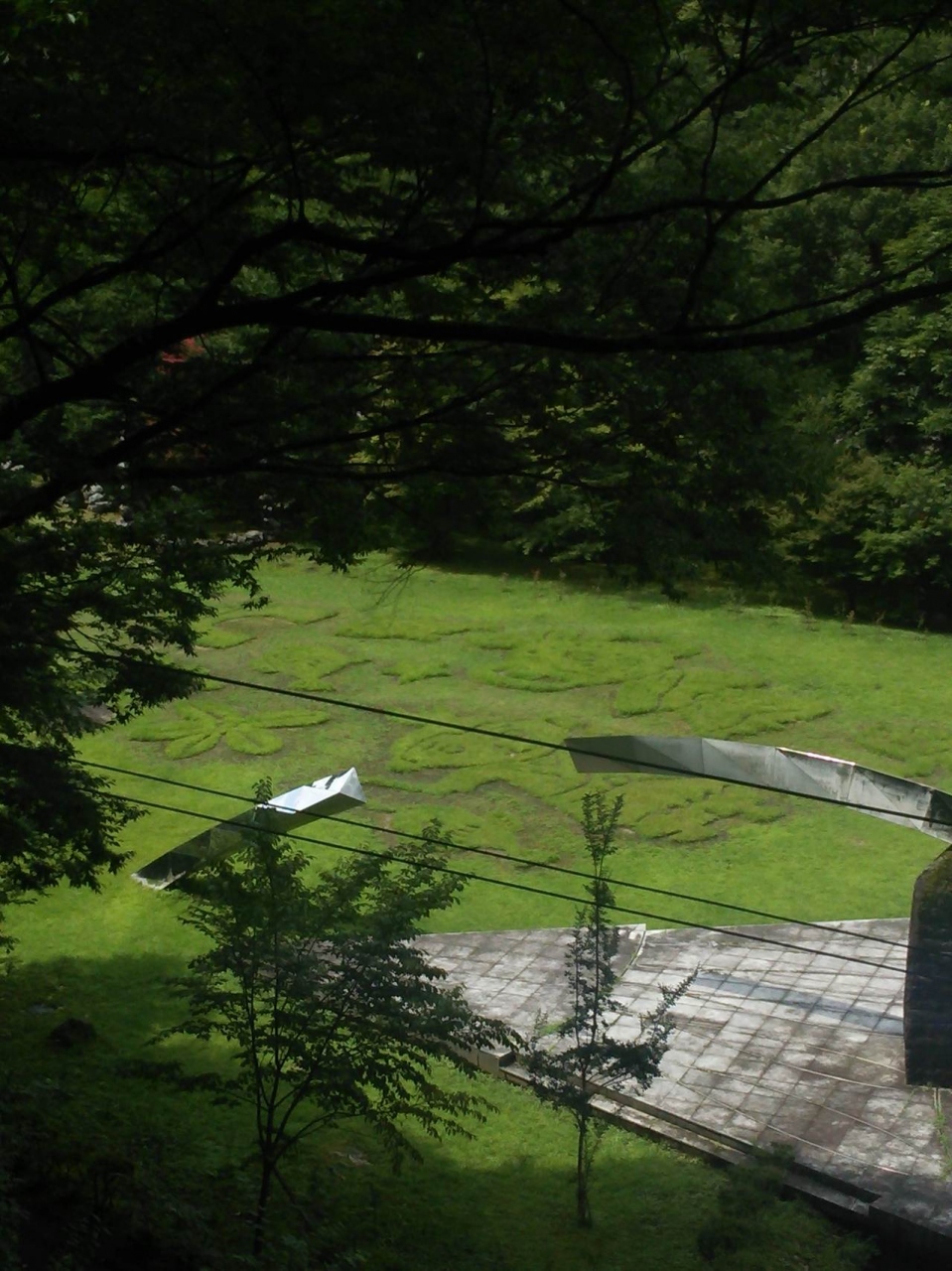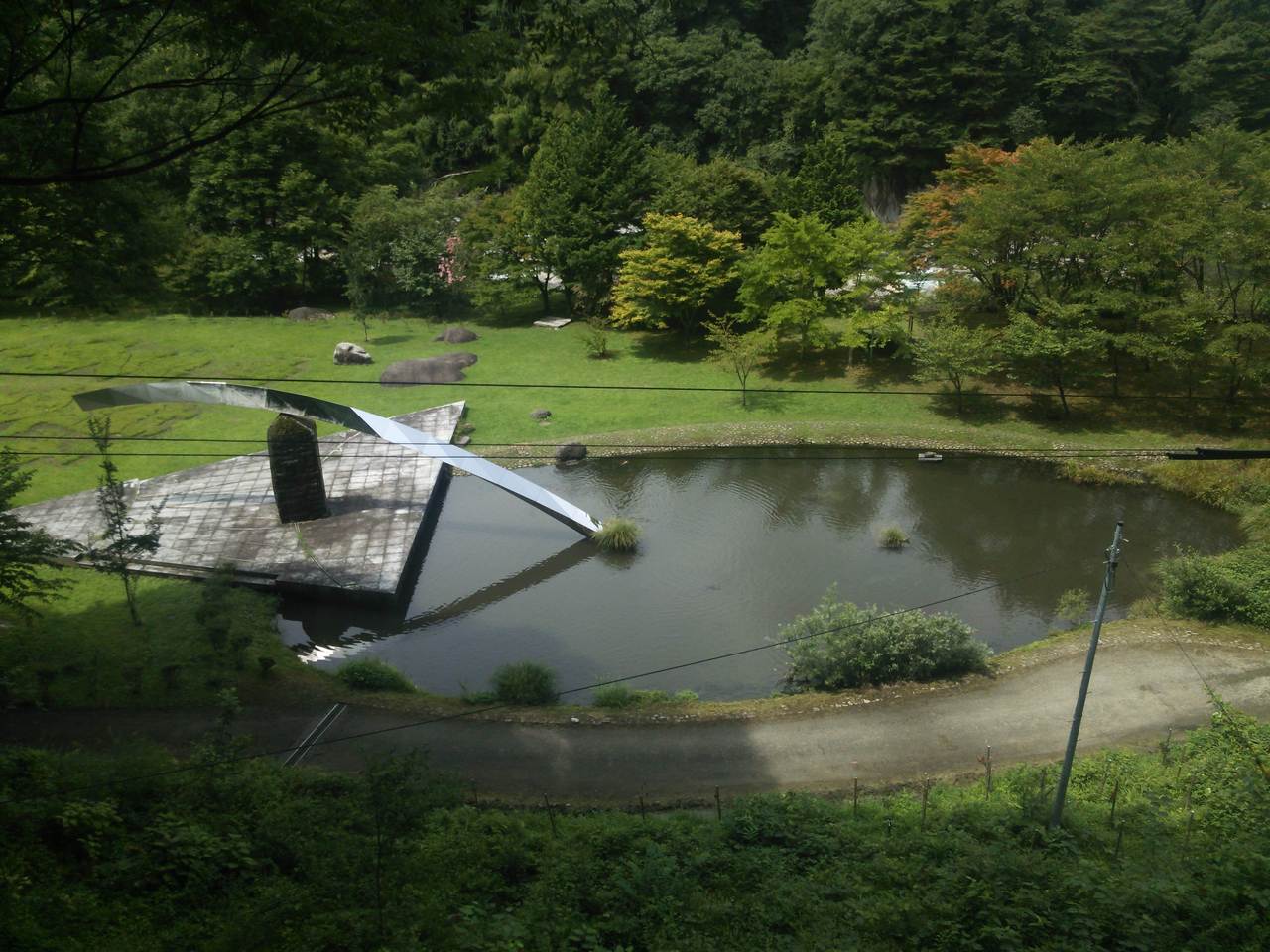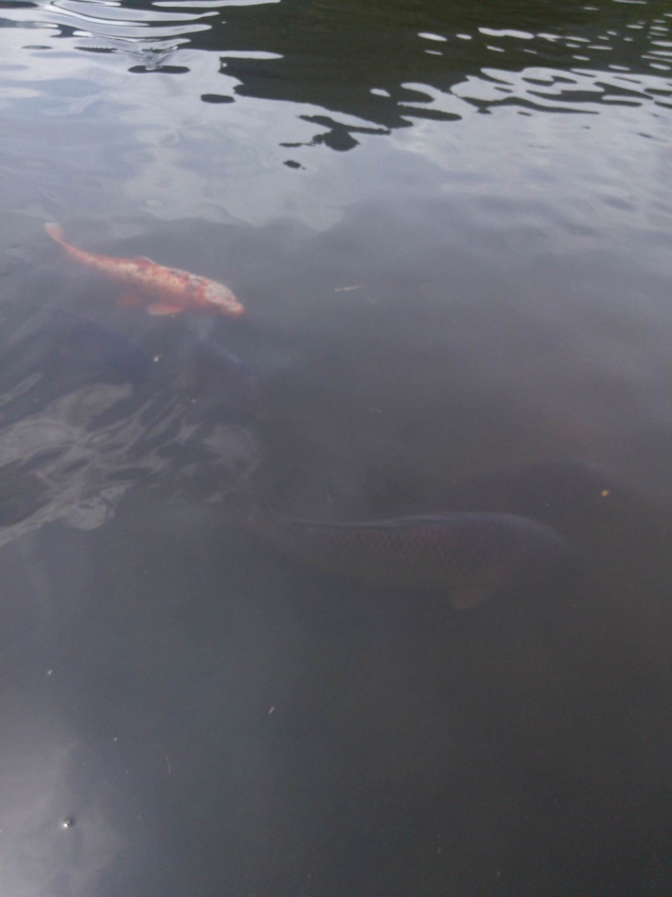 芝生にはデザインが施されて、池には大きな鯉がいました。