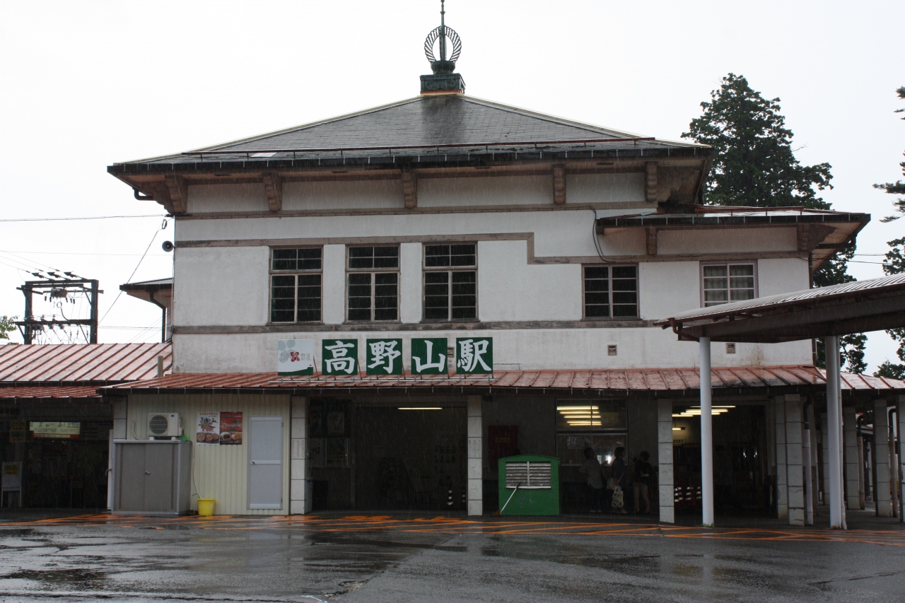 「極楽駅」で下車し、ケーブルカーで高野山駅に到着。駅前にバス乗り場があります。