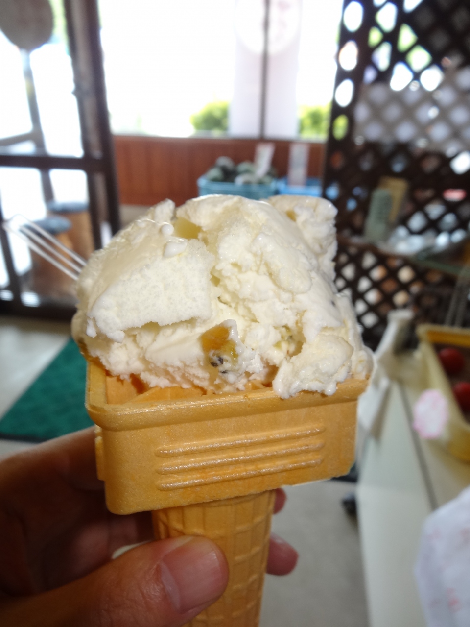 道の駅「農匠の郷やくの」にある、売店、食事処です。地元でとれた食材を活かしたジェラートを食べることができます。キウイを使ったジェラートを食べましたが、大きめにカットされた果実の食感がとても良かったです。丹波地方特産の黄粉を使ったジェラートも濃厚な味わいで美味でした。