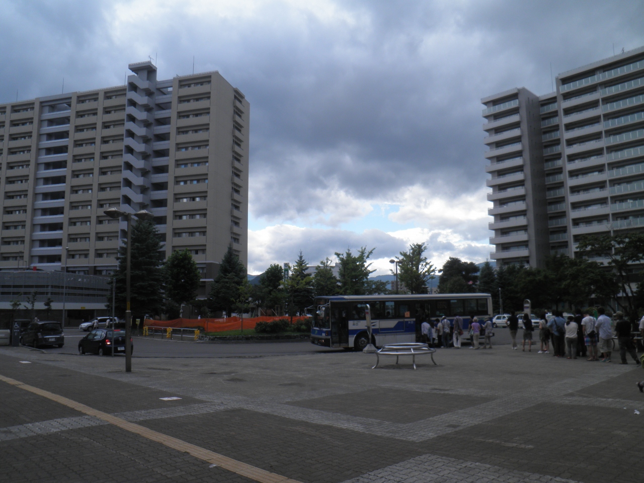 2014年に新しくなった札幌競馬場に行きました。 JR札幌駅の隣の桑園駅からシャトルバスがでているとのことで、桑園の大型ショッピングモール側にあるバス停から乗りました。 休日とあって、長い列ができていて、家族連れも多くいました。