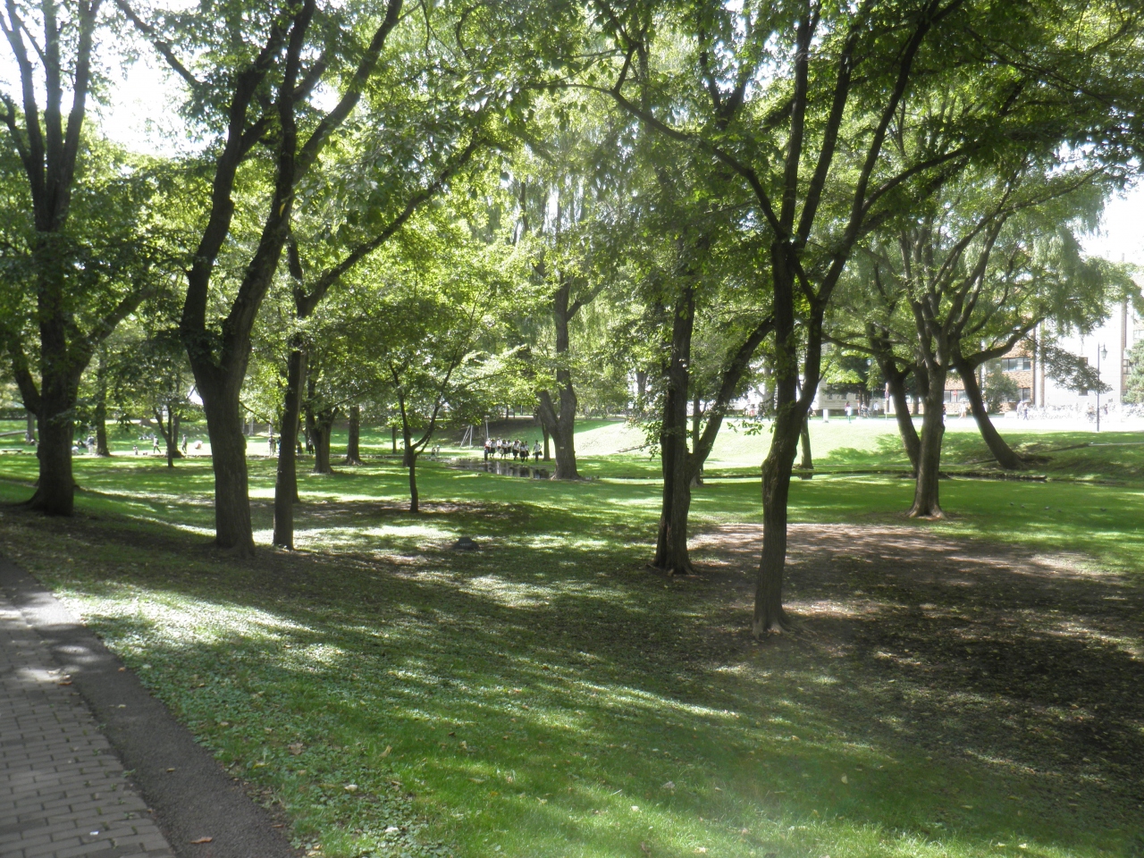 8月下旬の休日、北海道大学の札幌キャンパスに北大マルシェをみに行きました。 農産物の展示などのほかに、飲食物の販売もありました。 その途中に、サクシュコトニ川が流れていて、河岸には樹木が多くて暑い日でも涼やかでした。 でもカラスも多くてのんびりはできませんでした。
