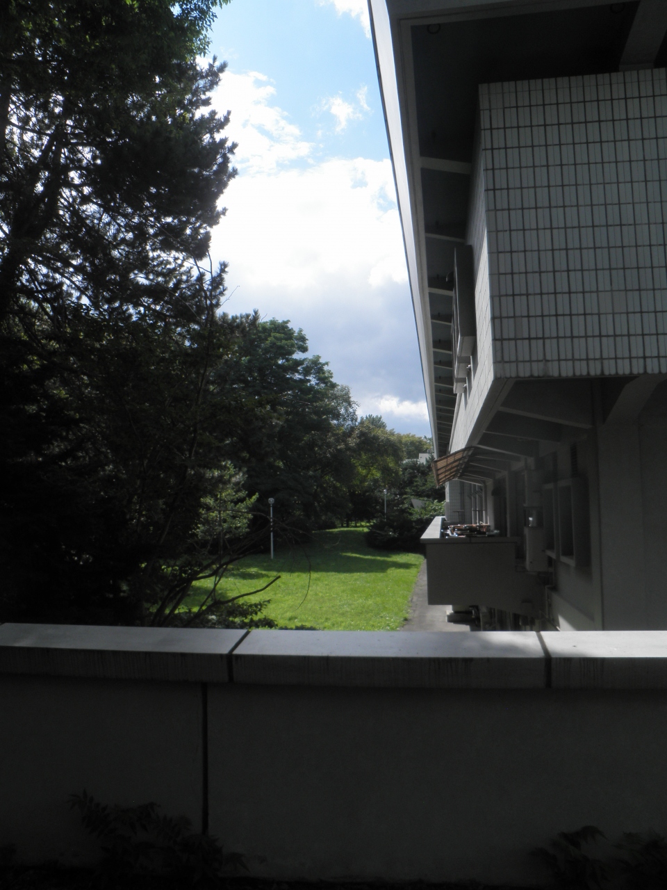 北海道大学の札幌キャンパスは、都会の中にあるわりには広大で、いくつか食堂があります。 一番南側にあって観光スポットに近いのは、クラーク会館のクラーク食堂だと思います。 ここにはいくつかテラス席もあって外を眺めることができました。