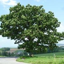 美瑛の風景を代表する景勝スポットの美瑛の丘の頂上付近にあるカシワの木です。