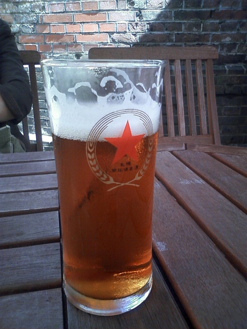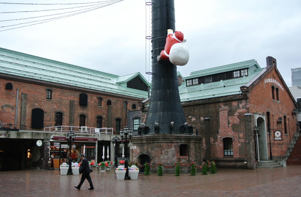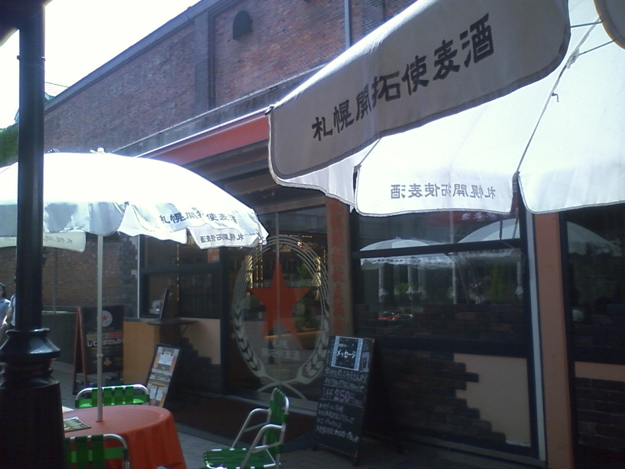 さっぽろファクトリーの煙突広場には、煙突横にテラス席が設けられていて、その横の窓口では開拓使麦酒を一杯250円で飲ませてくれます。
