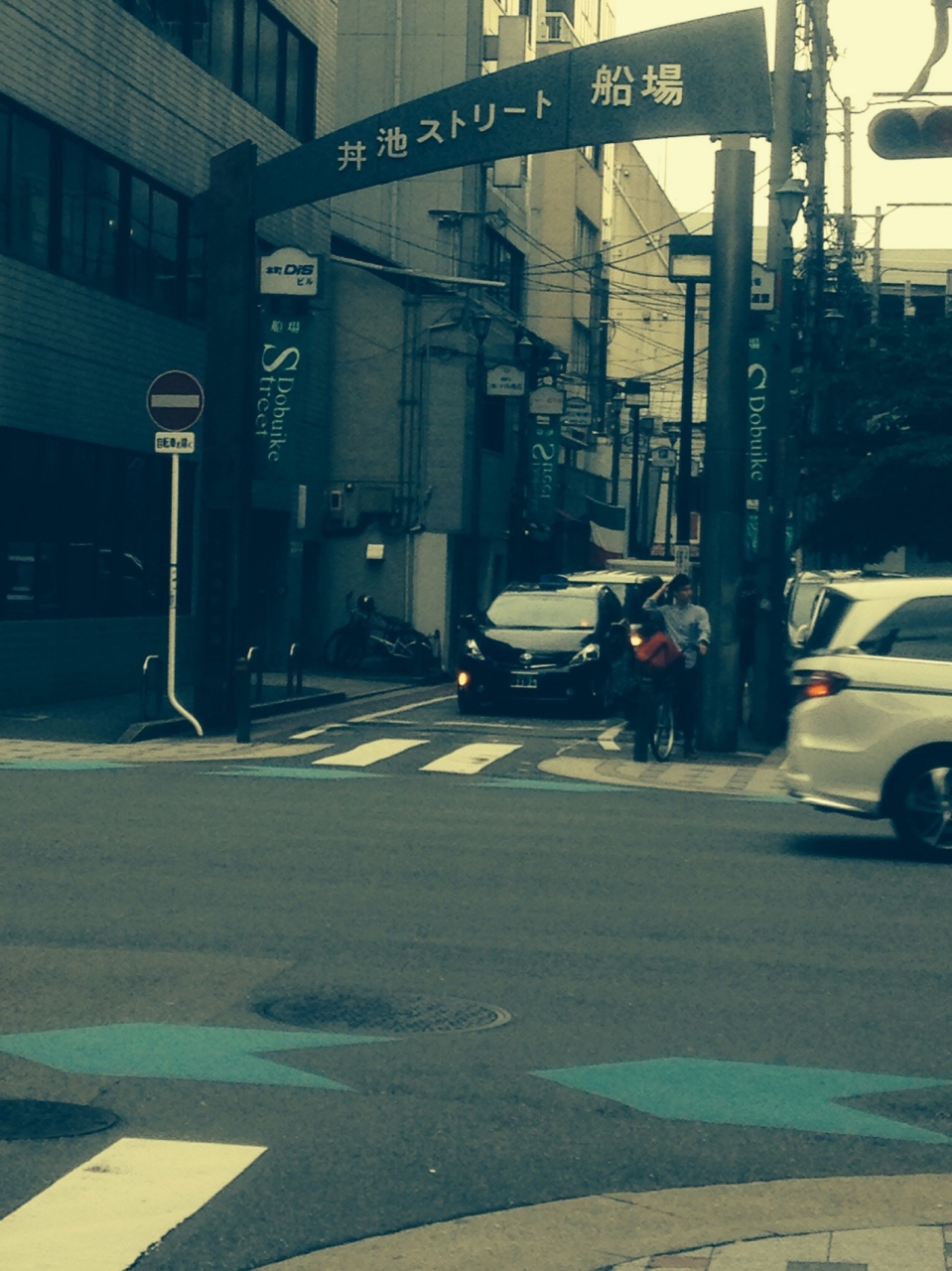 今は、飲食店なども多く、車は一方通行の細い街路です。