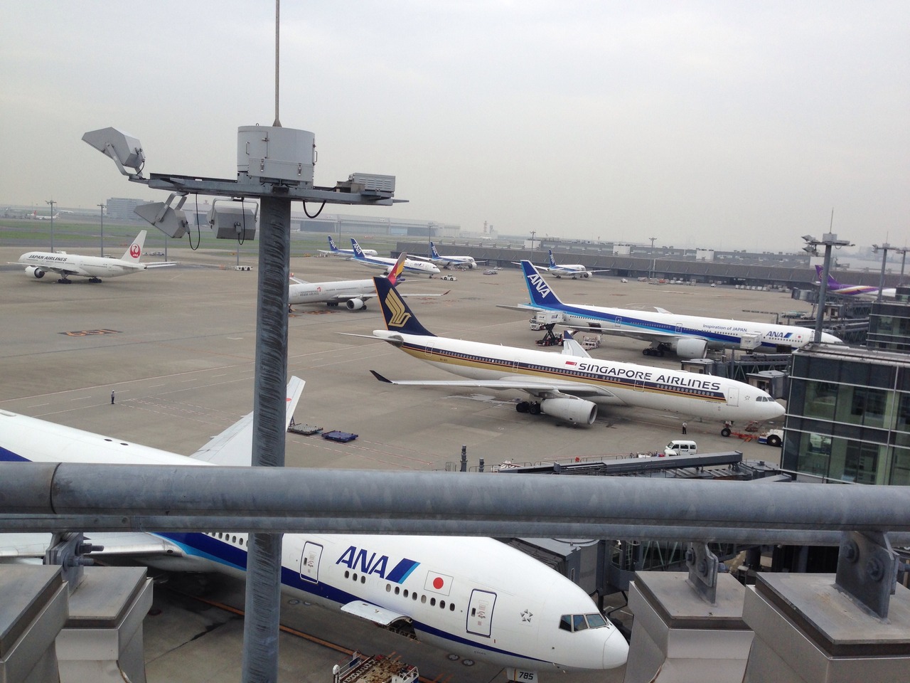 羽田空港国際線ターミナルにある展望デッキ。国際線の便数も大幅に増え、様々な航空会社が見られるようになりました。
