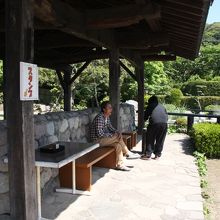 積み上げられた 石の隙間から 噴煙を上げています~。