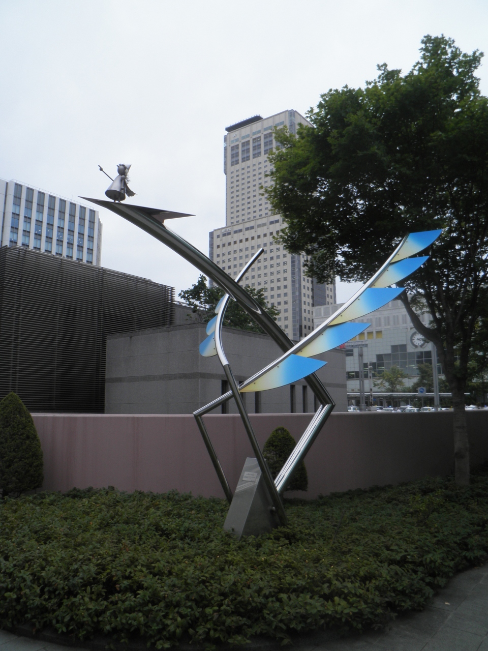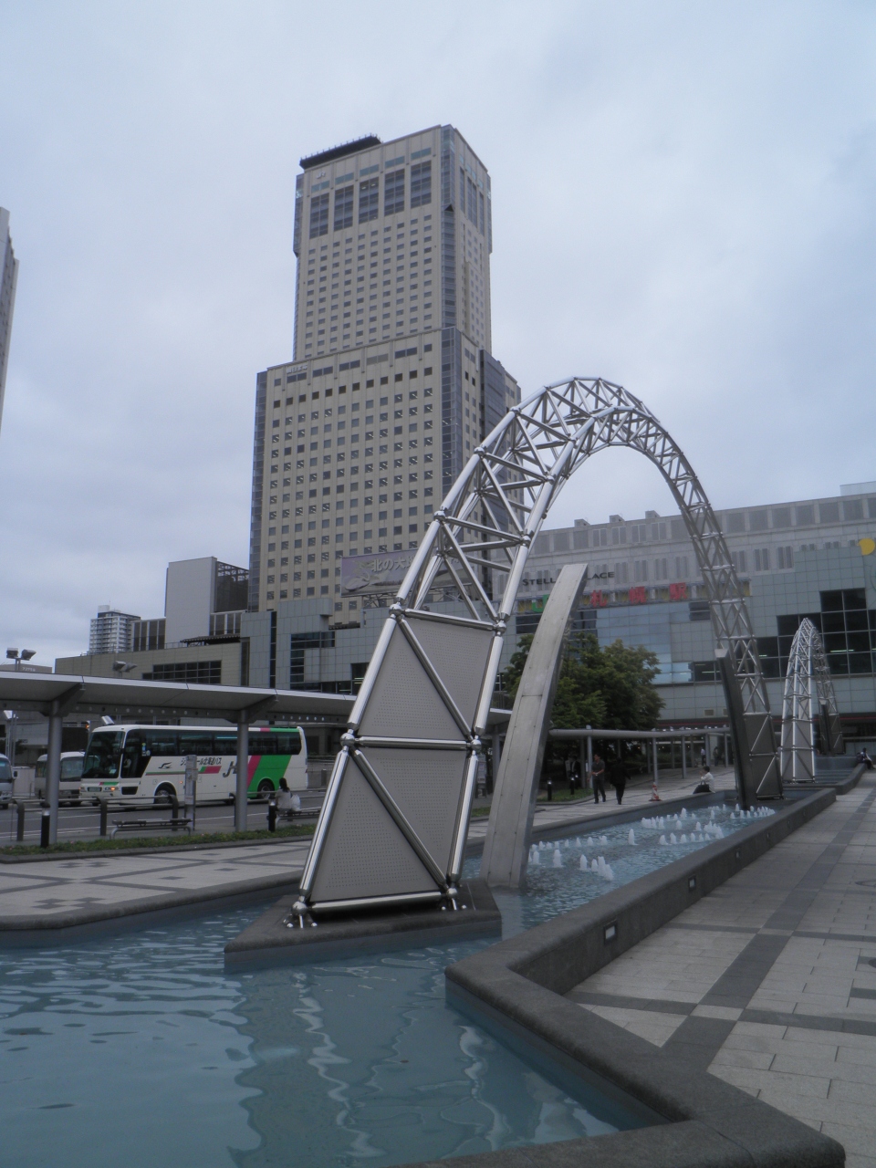 札幌駅の北口は南口に比べて、にぎやかではないけれど、いくつか芸術作品をみることができます。 デアイバチの他に、向かい側にメルヘンチックなオブジェもあります。 バスターミナルにはアーチ型の噴水があります。 また、地下の連絡通路にもオブジェがあります。