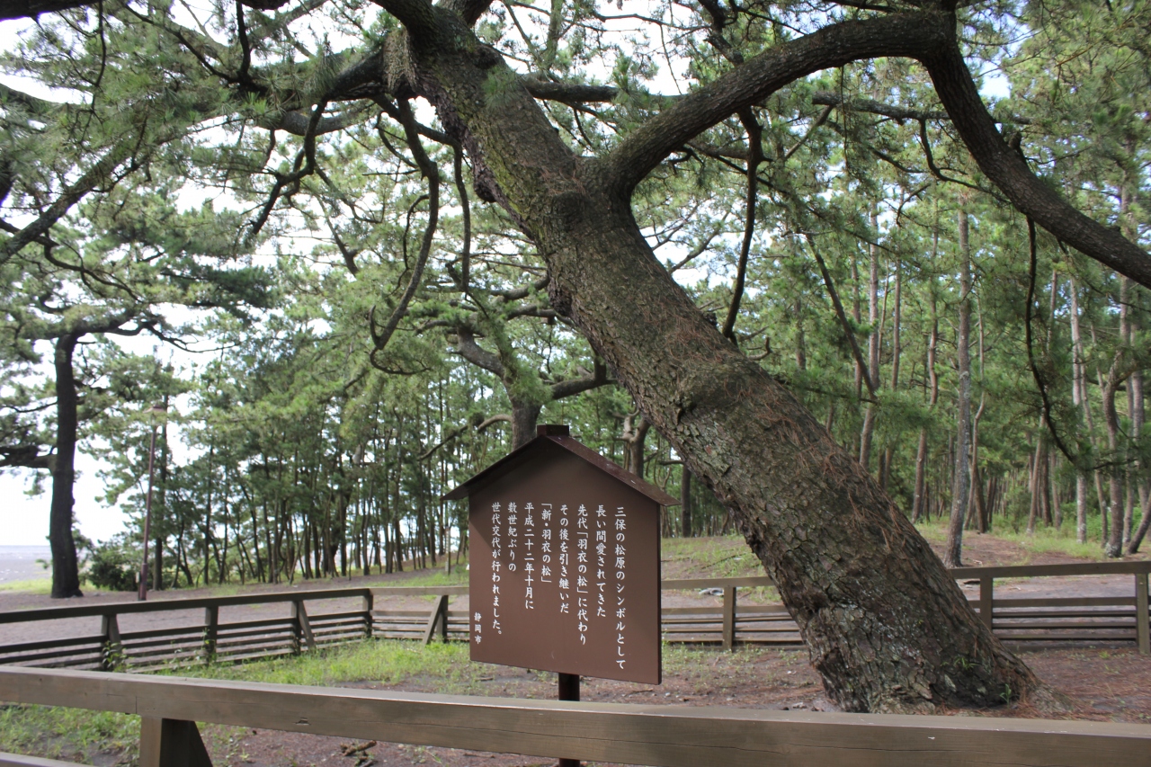 三保の松原の中、柵で囲われたところに、羽衣伝説にちなんだ羽衣の松がありました。