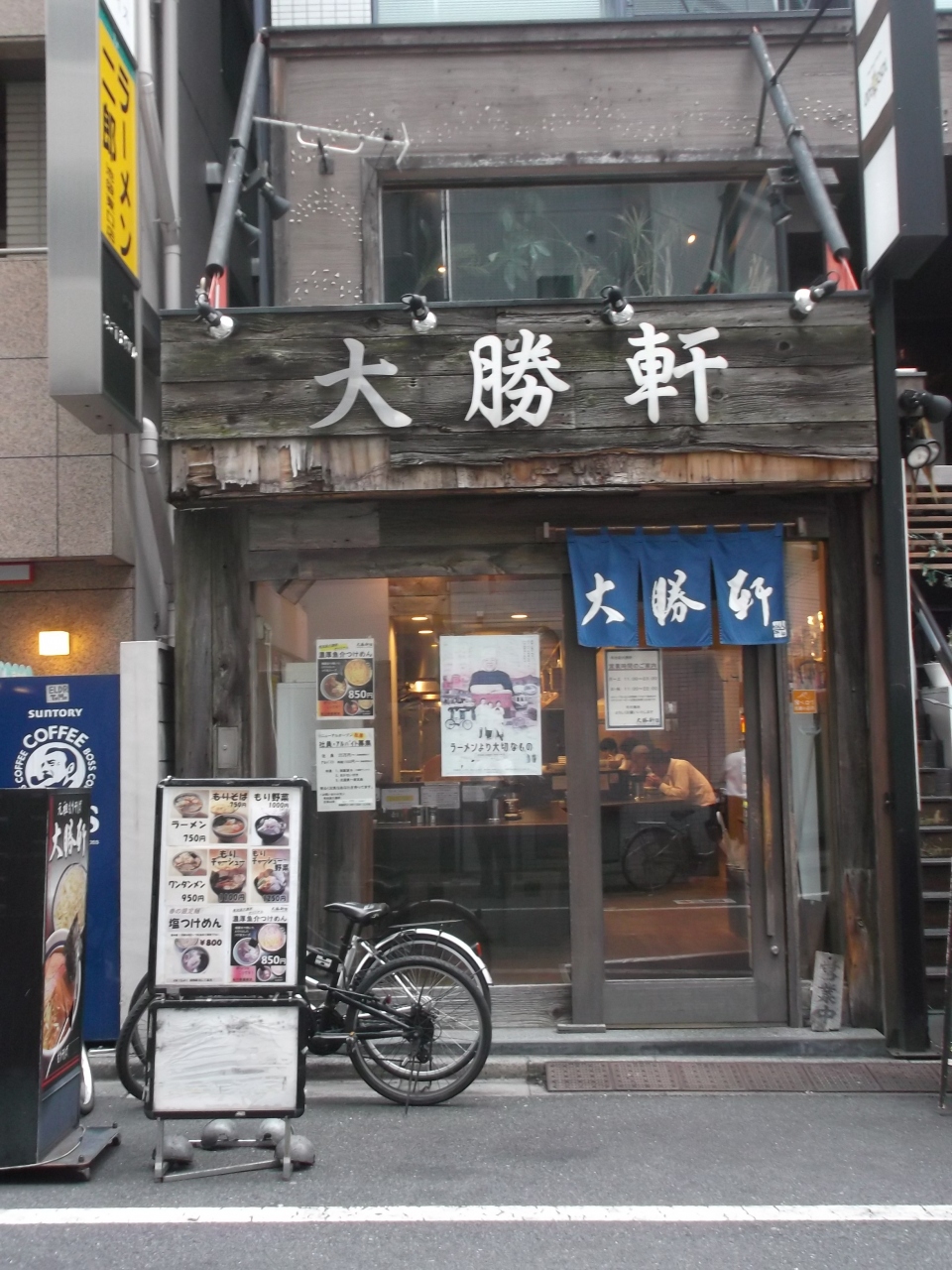 池袋のラーメンと言えば、大勝軒ですよね。ここ、南池袋のラーメン通り?、となり近くにラーメン次郎、そのまた向うにもラーメン屋さんが軒を並べています。もう固定ファンで繁盛しているのでしょう。フアンでなければどこに入ろうかちょっと迷いますね。池袋だからつけ麺のここにしました。