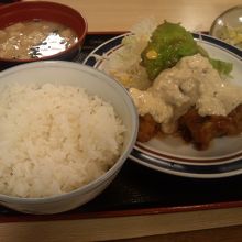 天神駅地下街を通り、ソラリアステージの地下一階にあります。牛丼を中心としたメニューですが、鍋やチキン南蛮などの定食もあります。