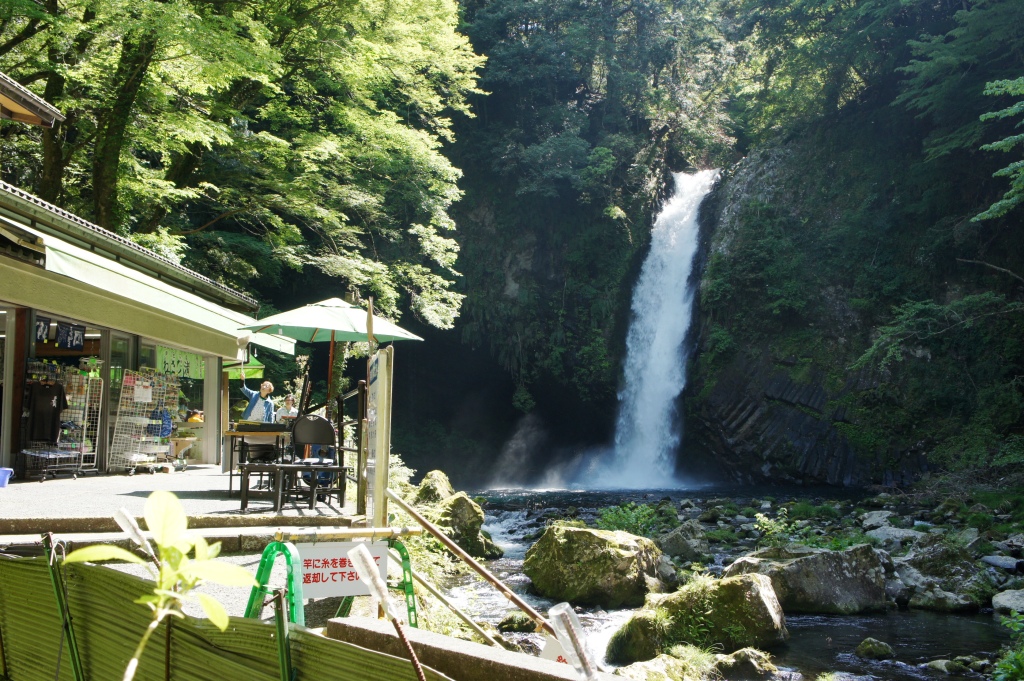 伊豆を代表する観光スポット浄蓮滝。下田街道(国道414号)を南下していると、土産物屋が並ぶ浄蓮滝観光センターが見え、車をとめればすぐ、と思いました。が、そうは簡単にいきません。観光センター前から滝は見えましたが、かなり下っていかないとたどりつけないことが分かります。行きは下り、でも帰りは結構な上りとなります。さて、楽な下りで滝の前に行くと、水量豊かな滝でした。高さ25メートル、幅7メートル。そんなに大きくはないけど、緑豊かな森の中にあり、とても気持ちよい空間でした。降りた場所にもお土産屋さんがあるのは、いかにも伊豆らしいです。鮎だかヤマメだかの釣り堀があったのにも、少々、ひいちゃいました。こういう場所って、何もない方が落ち着くけどなあ。さて、戻りは当然、厳しい上り坂。ふーふーという声があちこちから聞こえてきます。