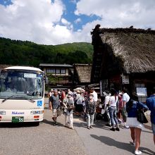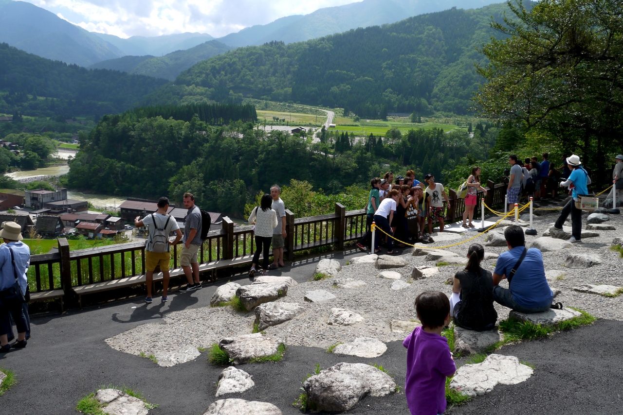 萩町シャトルバス停から10分200円,20分おきの運行.萩町0・20・40分,展望台10・30・50分がシーズンの原則.合掌つくりの家が立ち並んでいることが手に取るようにわかるので登ったほうがいい.マイカー規制区域外にあるので,最初か最後に自分の車で寄るのもいいと思う