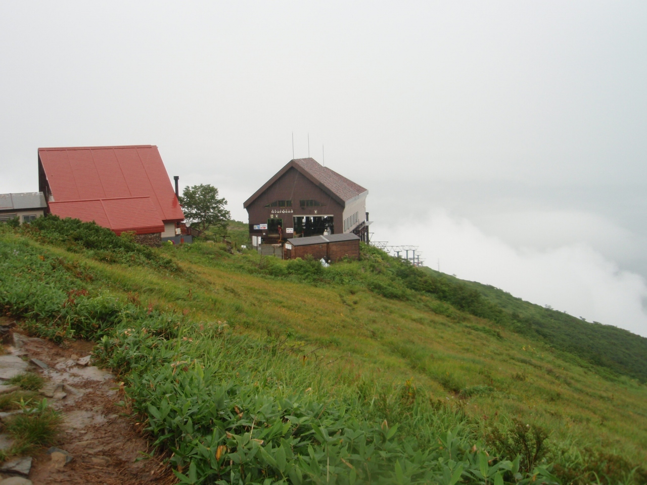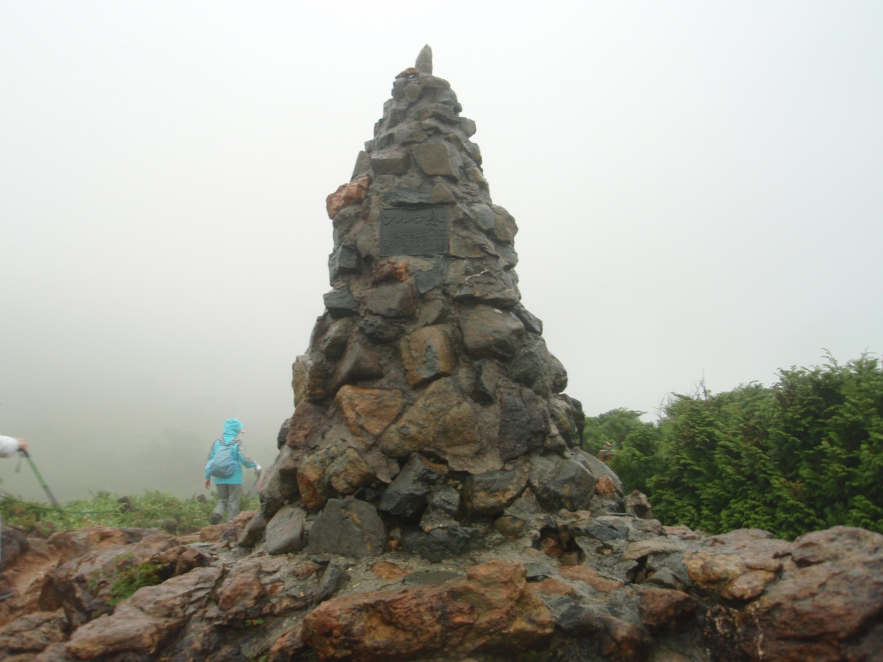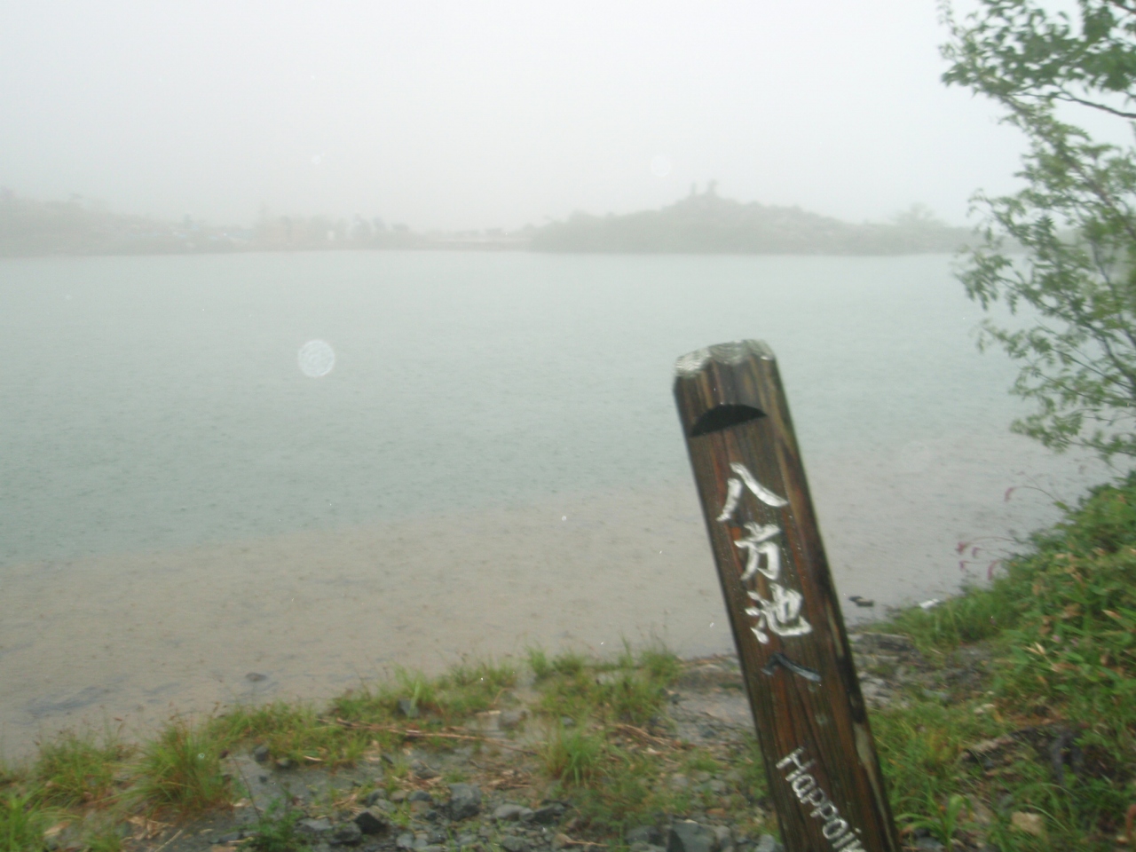 ゴンドラと2つのリフトを乗り継いで、片道約1時間半ほどの登山道を傘をさしつつ、目的の八方池を目指しました。雨脚は結構強く2060mの八方池に着いたとしても北アルプスの絶景は望めないと思いつつ何とかゴールまで行きましたが、結果は予想通り。