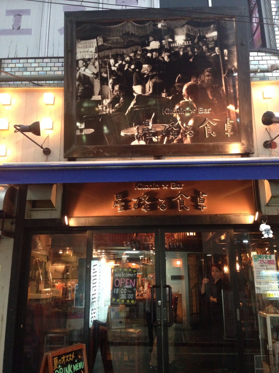 外観はおしゃれで、一階はカウンターが中心。ちょっと入りにくいかなーという雰囲気ですが、屋根裏には8名くらい座れる席と、2人がけの席があります。