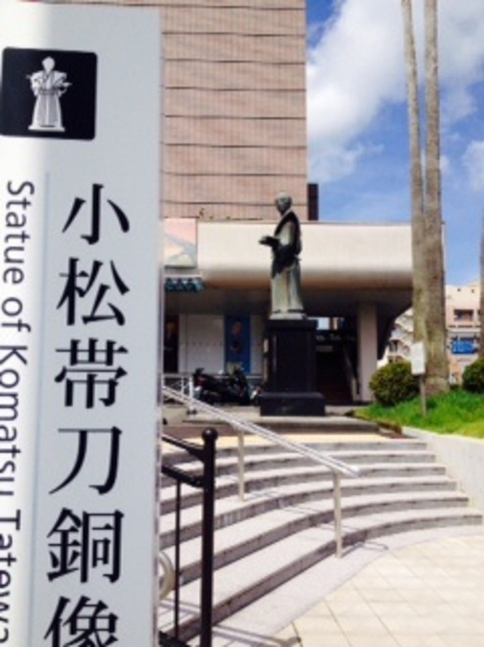 中央公園前の宝山ホールの敷地内にある。丁度、城山側に位置する西郷隆盛銅像と向き合う形になっているのが、面白い。西郷や大久保の像に比べ、小ぶりだが、実際には薩摩藩を取り仕切り、しかも西郷や坂本龍馬などが動きやすくなるように、尽力していることは、皆理解しているはずだ。