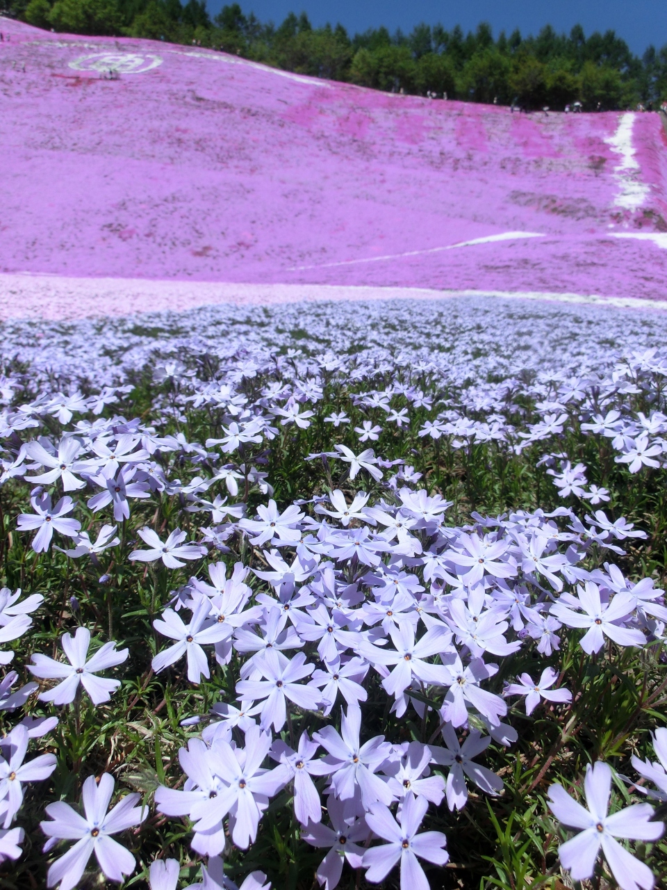 この日は天気も良くて空の青さと芝さくらのピンクがとても鮮やかでした。