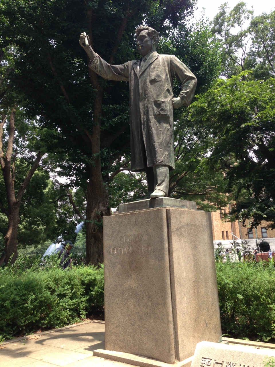 上野恩賜公園内の銅像といえば西郷隆盛像が有名ですが、野口英世像もあるのはご存知ですか。公園内の国立科学博物館の前と大きな噴水広場の中間辺りにあります。公園の外れににありあまり目立ちませんが、私も先日公園に行った時に気が付いたので、思わず写真を撮ってしまいました。