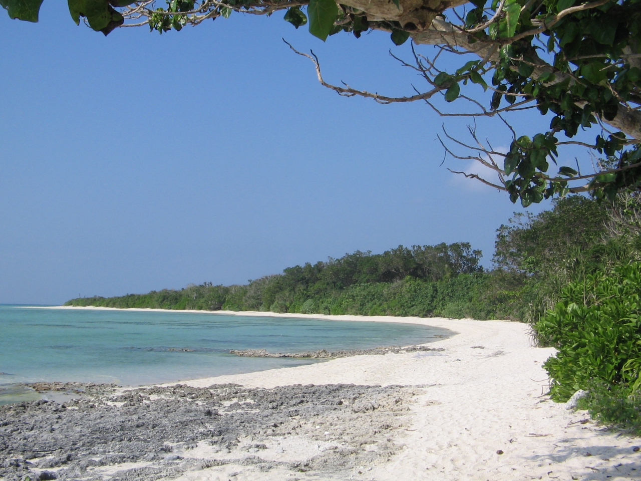 竹富島は石垣離島ツアーの流れで2日目に訪れました。お定まりの水牛車観光の後、マイクロバスで星砂浜に訪れたのです。まあここの浜の綺麗なこと・・・。海、空、熱帯植物竹富島に来てよかったと思いました。