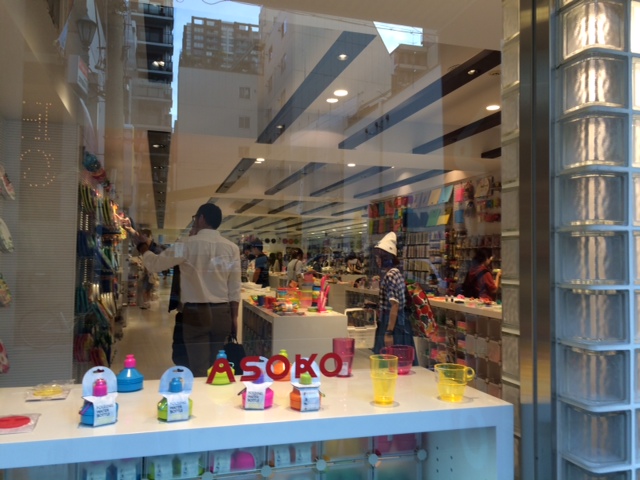 南堀江のオレンジストリート沿いにあります。平日の17時頃来店。客が少なく、ゆっくり商品を見ることができました。妙にマスキングテープが充実しているなという印象。壁にかかっている商品はともかく、棚に陳列された商品が乱れており、いかにも「安売りの店」という雰囲気でした。安いだけでは商品を手に取る気になりません。梅田茶屋町の店舗に比べると、ワクワク感が劣りました。