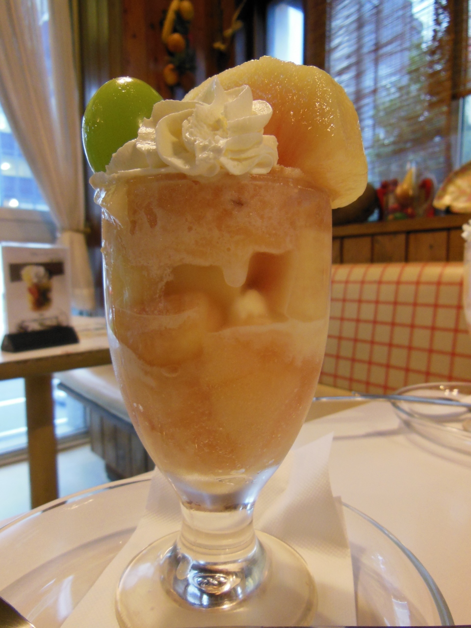 スポンジもコーンフレークも入っていない純粋なパフェ。そしてフルーツが本当においしい!!こんなにおいしいパフェは食べたことがありません。アイスとシャーベットと生クリームが入っていますが、シャーベットはほとんどフルーツです。フルーツを凍らせた感じです。そして、レトロな雰囲気がまたいいんです。本も置いてあってくつろげます。ひとりで来ている人もいました。四谷に用がなくても行ったほうがよいお店です。
