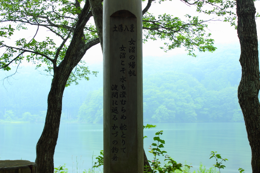 つつじ山公園の先に女沼の大きな駐車場があります。そこから少しで女沼を左手に見ることができ、遊歩道となっています。マイナスイオンが発生しているのか、その数値が書かれてありました。少し手前に男沼に入っていく看板がありましたが、そちらは悪路らしく、「自己判断で」と書いてありました。