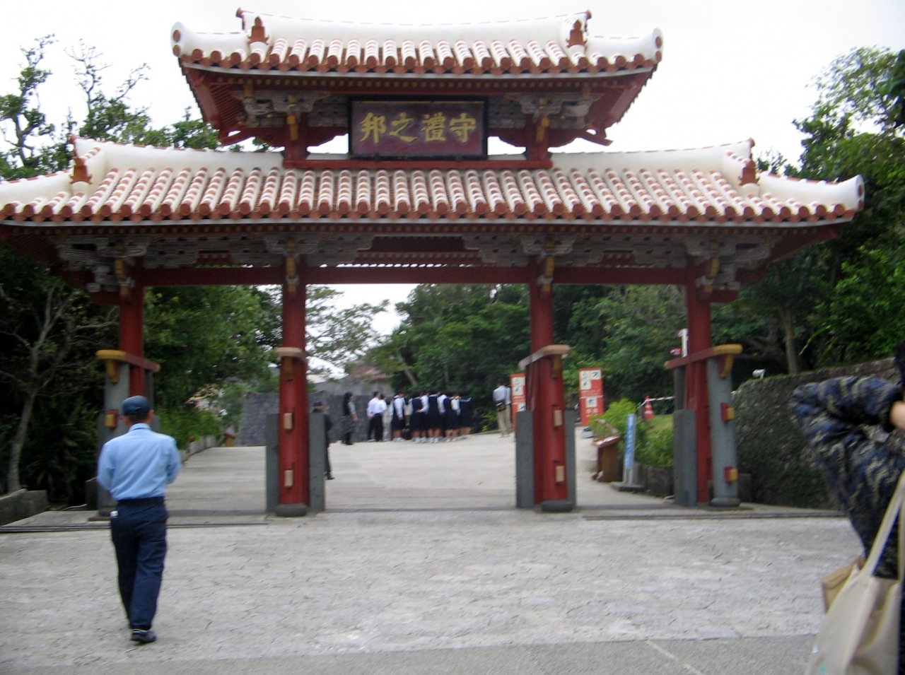 首里杜館の地下にある駐車場から出てほんの少し歩いた所に有名な守礼の門があります。その周りに何も施設もなく唐突に門がデンとある感じです。それだけに朱に塗られた門の存在感はありました。