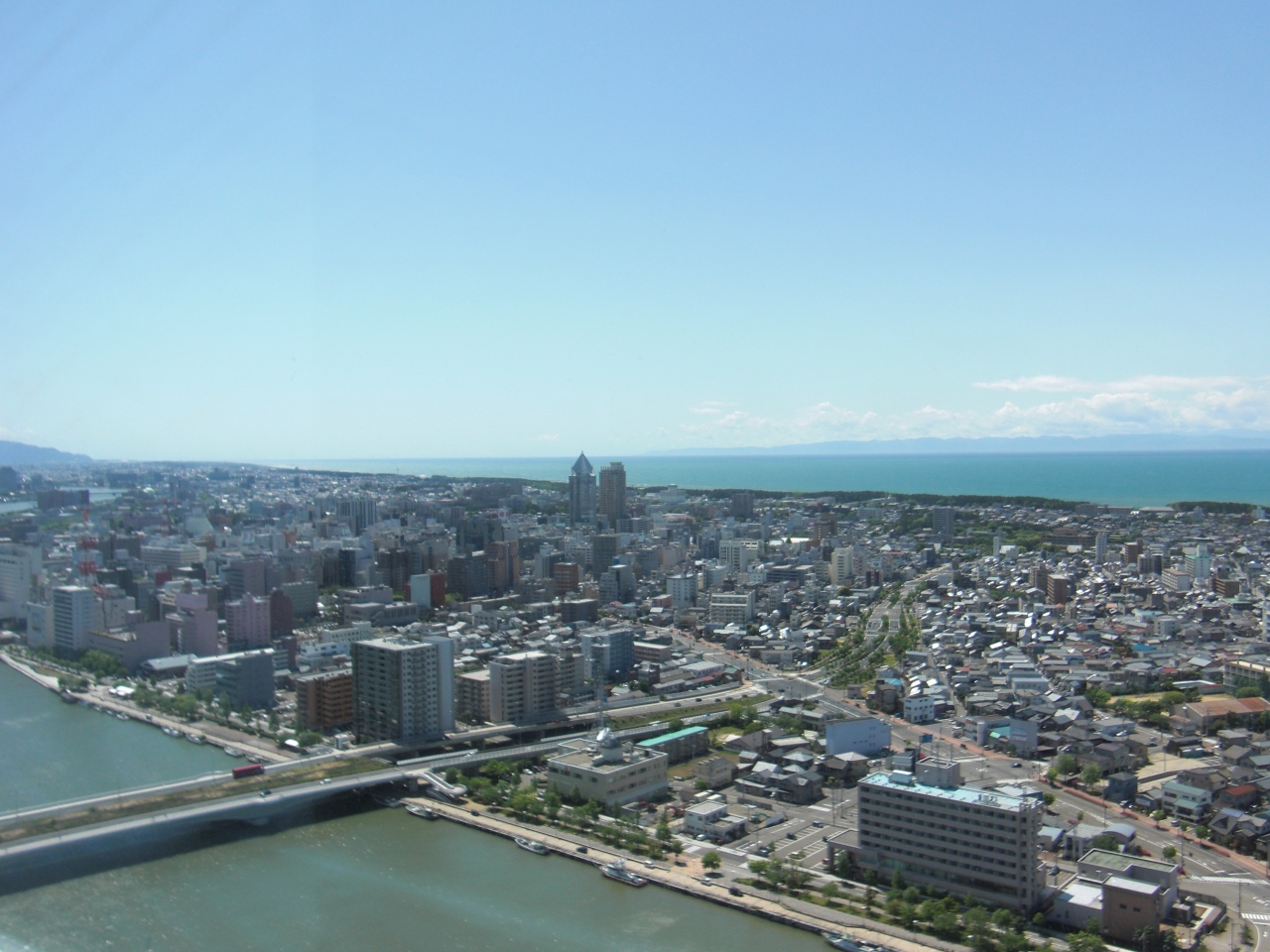 新潟市内をほぼ360度見渡せる市内で一番高いビルです。周囲にはマンションもほとんどないので、人家も見渡せて、そこに住む人の息遣いが聞こえてきそうです。(遠視なのでよく見えてしまうのですが、のぞき見できるほどよくみえません)