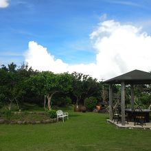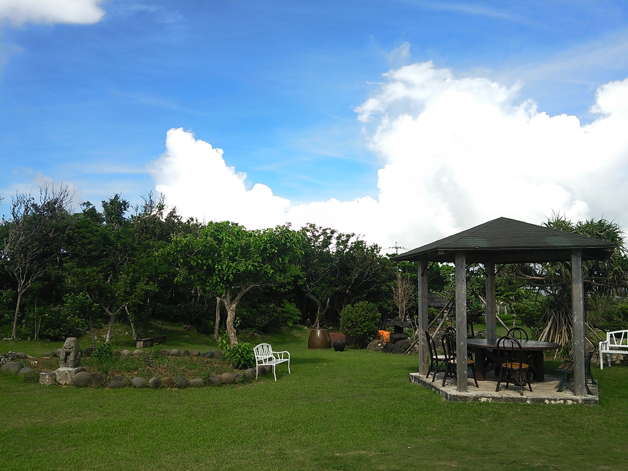 南城市知念の高台にあるくるくまの森です。敷地内には健康食品ショップ、薬草園、化石ミュージアム等がありますが、メインは絶景を堪能しなごら食事やお茶ができるカフェくるくまでしょう。くるくまとは変わった名前ですが、「クルク山」という地名と薬草ウコンの学名に由来があるようです。