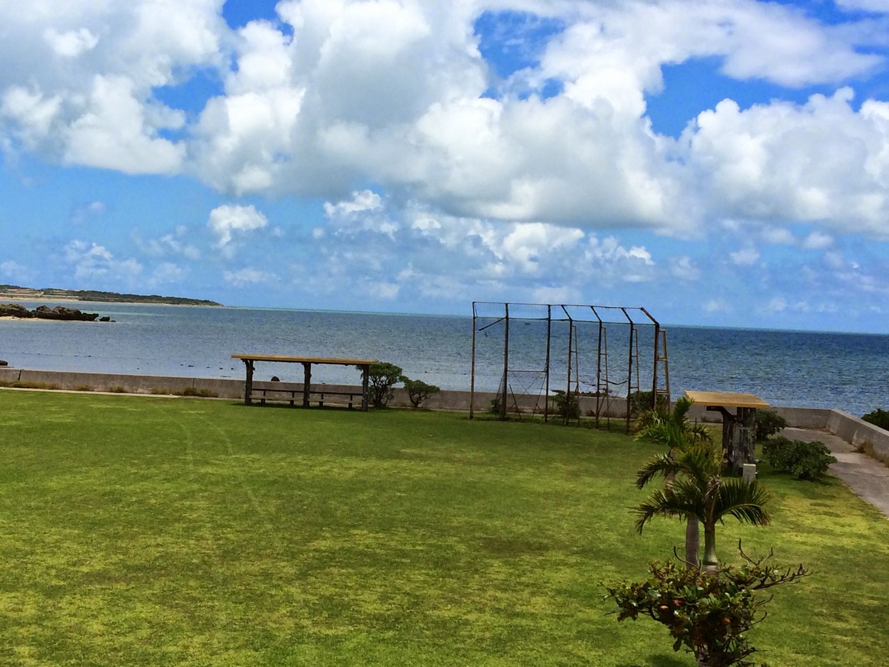 細崎の少し手前にあります。マンタが乗っかっている展望台がある他はトイレがあるだけの広場です。この展望台、高さはさほどありませんが展望スペースから見るヨナラ水道と西表島は天気が良ければ絶景です。ほぼ小浜島の最西端にあるため、夕陽を見るのには最高のロケーションかと思います。ただ集落からも若干離れているため、足の問題はありますが・・・。また人が群がる場所でもないので、ひとりでのんびりするにはうってつけの場所だと思います♪