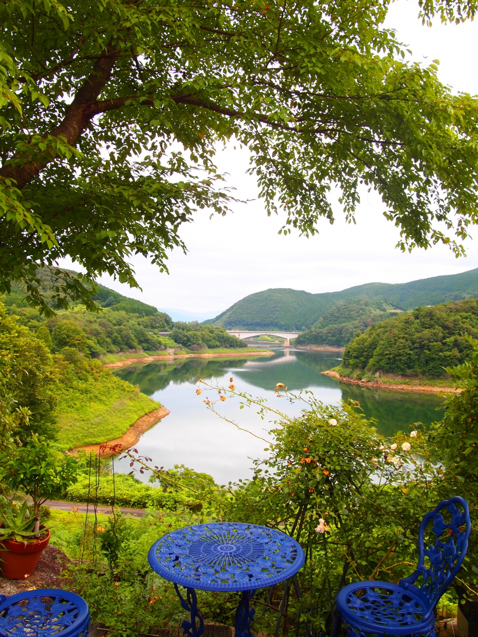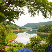 湖畔にあるカフェから阿木川湖を眺めながら頂くランチは最高です。