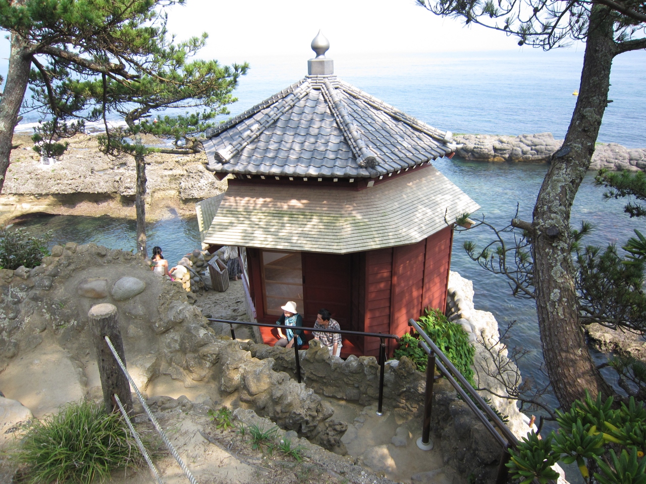 岡倉天心邸の庭から少し下ったところに六角堂はありました。2011年の震災で以前の六角堂は流失、新しく再建された六角堂が建っていました。太平洋に面していて、海面からもそう高くはないところに建っているので、震災の影響を強く受けたんだなと想像できます。