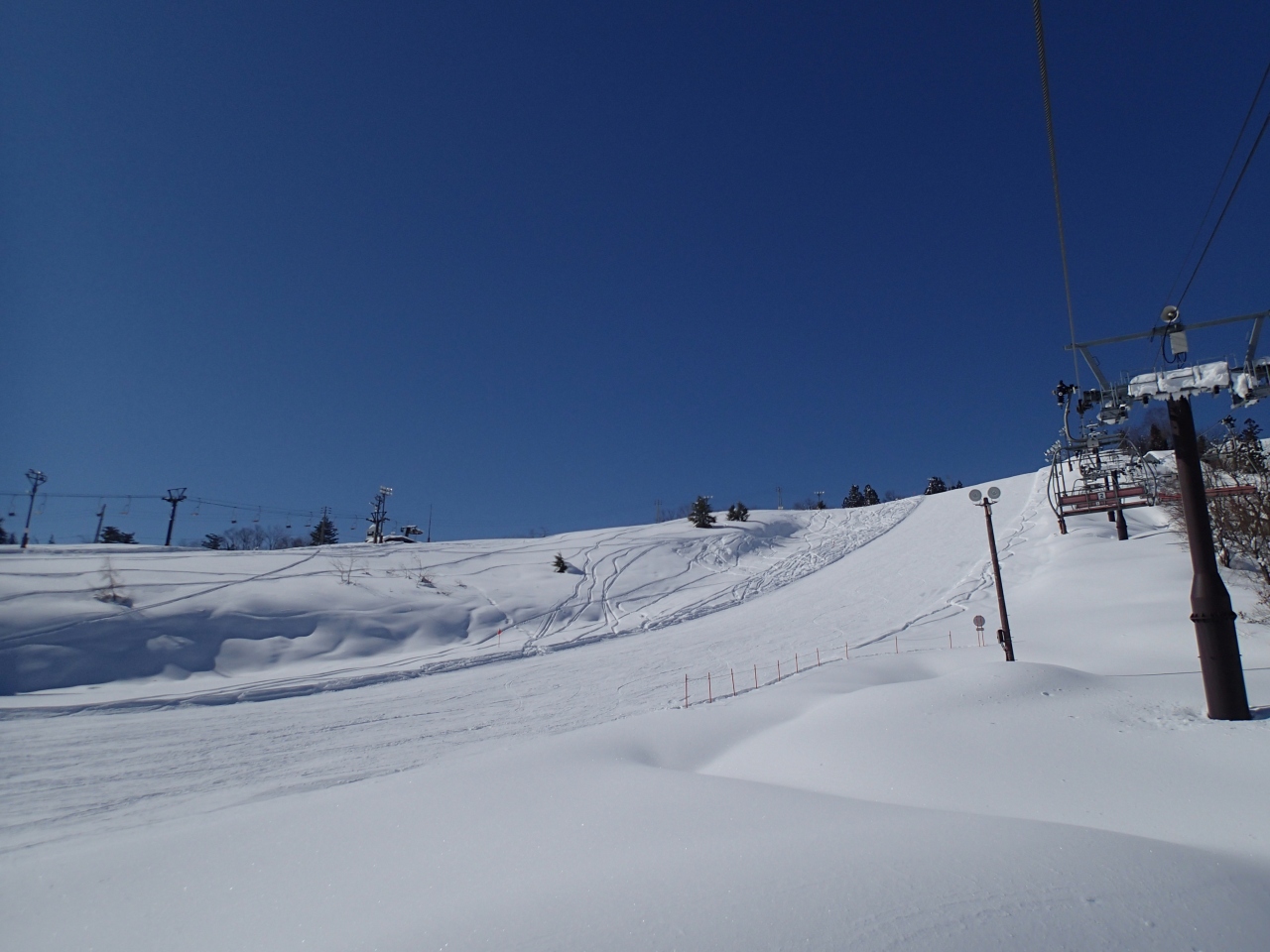 コース脇に非圧雪の箇所があり、降雪後は、パウダーが狙えます。