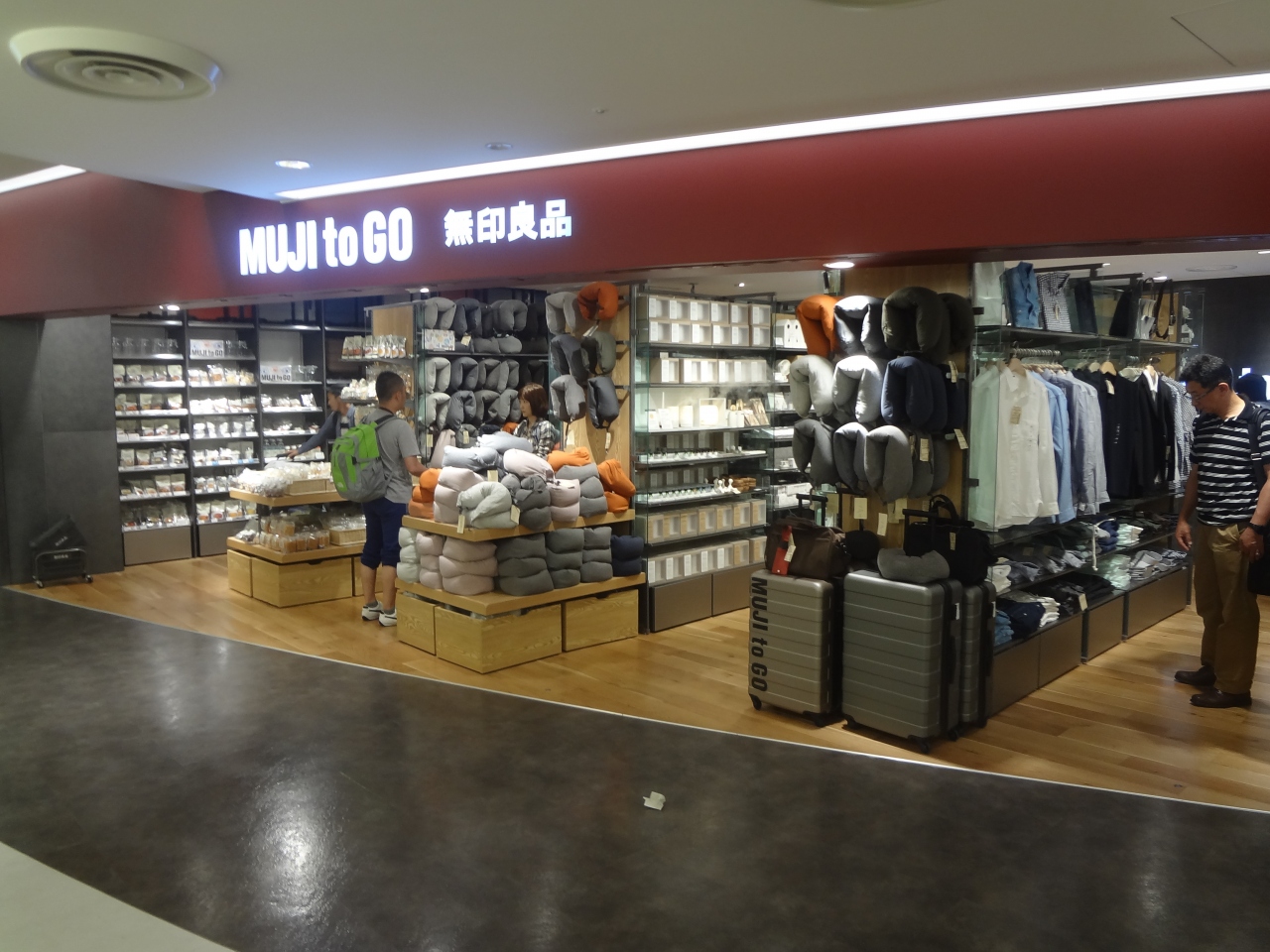 第一ターミナルの商業エリア改装に伴い、MUJIも新装オープンし、以前の店舗よりも広くなり、商品の充実度も増したように思います。商品はいろいろと取り揃えていますが、空港だけあって旅行関連グッズは充実しています。外国人のお客さんもけっこう目にするのはMUJIが世界ブランドの証でもあるからかもしれません。