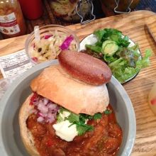 靖国神社のすぐそばにある小さなお店です。チリビーンズ専門店と言うことでずっと気になっていました。思ったほど辛くなく、卓上にあるハバネロやホットソースで自分の好みの辛さに仕上げることができます。女性が一人で気軽に入って来て注文するのが目立ちました。サンドウィッチやホットドッグもあります。隣には姉妹店のFACTORYというパン屋があるのでそこのパンを使っているのでしょう。とっても美味しかったです。