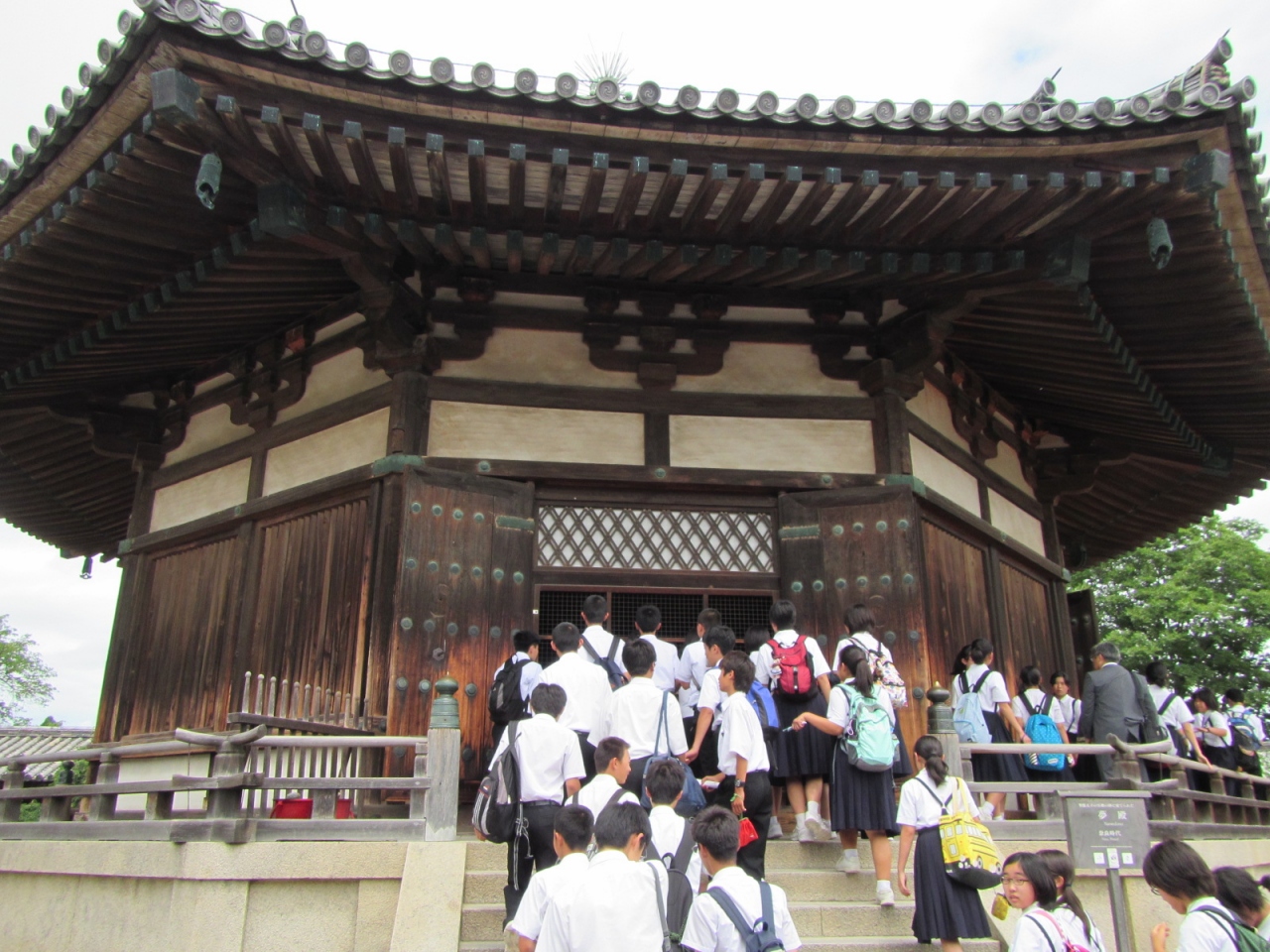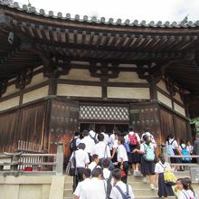 夢殿は春と秋に約1カ月ずつ開扉されるが、訪問した開扉されない時期でも境内は修学旅行生であふれている。